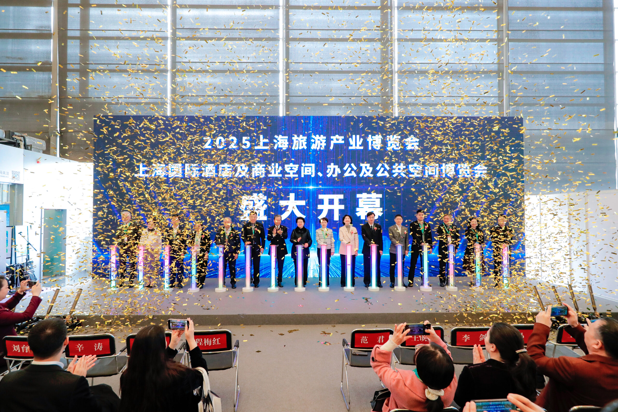 致辭圓滿結(jié)束之際,現(xiàn)場尊貴的嘉賓們共同見證了展會啟動儀式的璀璨瞬間,標志著2025上海國際酒店及商業(yè)空間、辦公與公共空間博覽會的盛大啟航!展館內(nèi)外,人流如潮,絡繹不絕,共襄這場行業(yè)盛事的非凡開場!