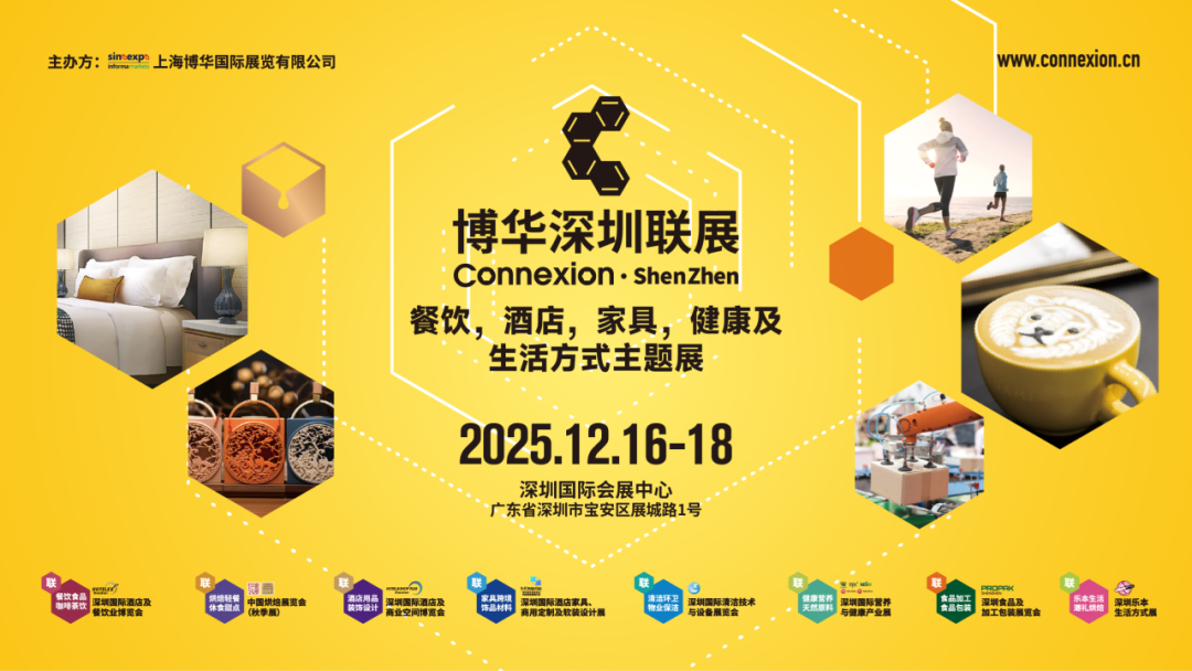 博華深圳聯展(Connexion Shenzhen)是上海博華國際展覽有限公司打造的華南地區旗艦級綜合產業盛會,自2023年創辦起落地深圳國際會展中心以來,首秀驚艷,2024年第二屆展會迎來系列升級,確定八大板塊聯動。即將在2025年12月舉辦的第三屆聯展,在堅持中前行,在持續中創新,規模達250,000平米,以更大的規模,新增的板塊,更為豐富的展品,把深圳聯展進一步打造成服務大灣區,深度鏈接餐飲、烘焙、酒店、家具、清潔技術、健康、加工包裝和生活方式等相關產業于一體的超大型一站式采購平臺。