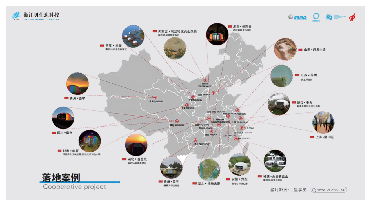 目前我們在全國不同熱門目的地陸續落地項目中,從火山草原到山間、湖邊。同時,我們會結合不同的場地,為星空房定制主題,比如以不同的星座命名房屋等。在房屋室內,我們也會根據不同的消費需求進行差異化的布局設計,如情侶輕奢大床房、親子房以及行政套房等。此外,裝配式房屋的安置可以突破一些固有建筑的局限,比如有的裝配式民宿房屋放在了水面上,還有的坐落在懸崖旁邊。因此,不論是什么類型的項目地,星玥居度假房屋都可以完美融入其中。